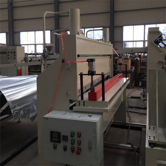 7. Aliuminio-plastiko kompozitinių plokščių gamybos linijoje naudojama hidrauliniu slėgiu maitinama kirpimo mašina. Kirpimo mašina yra greita ir sklandi. Taikant programuojamąjį