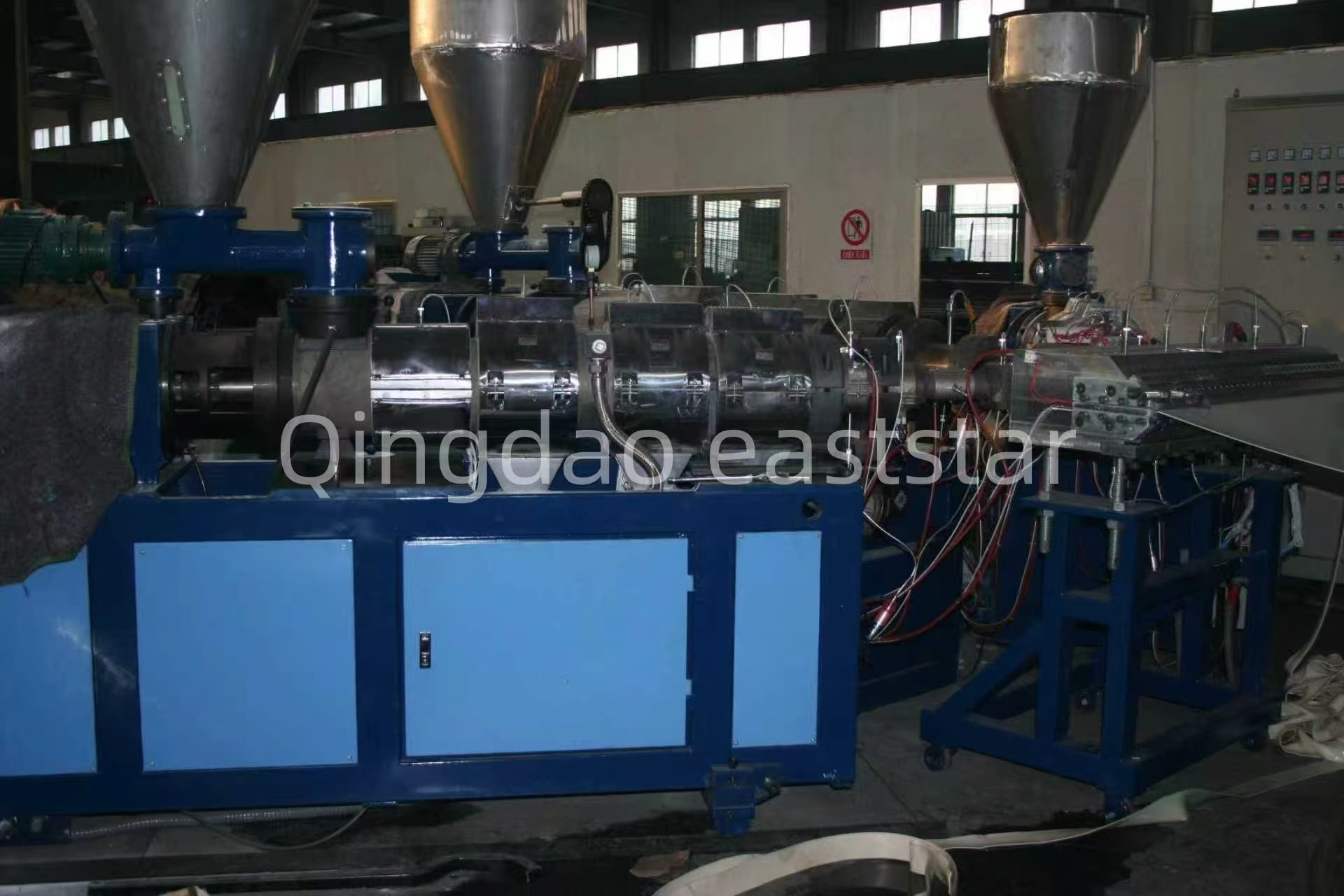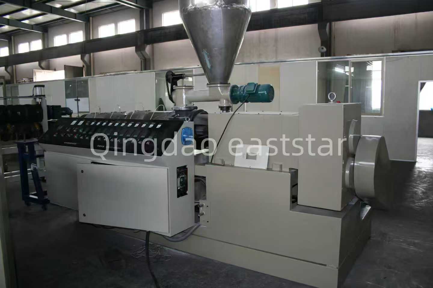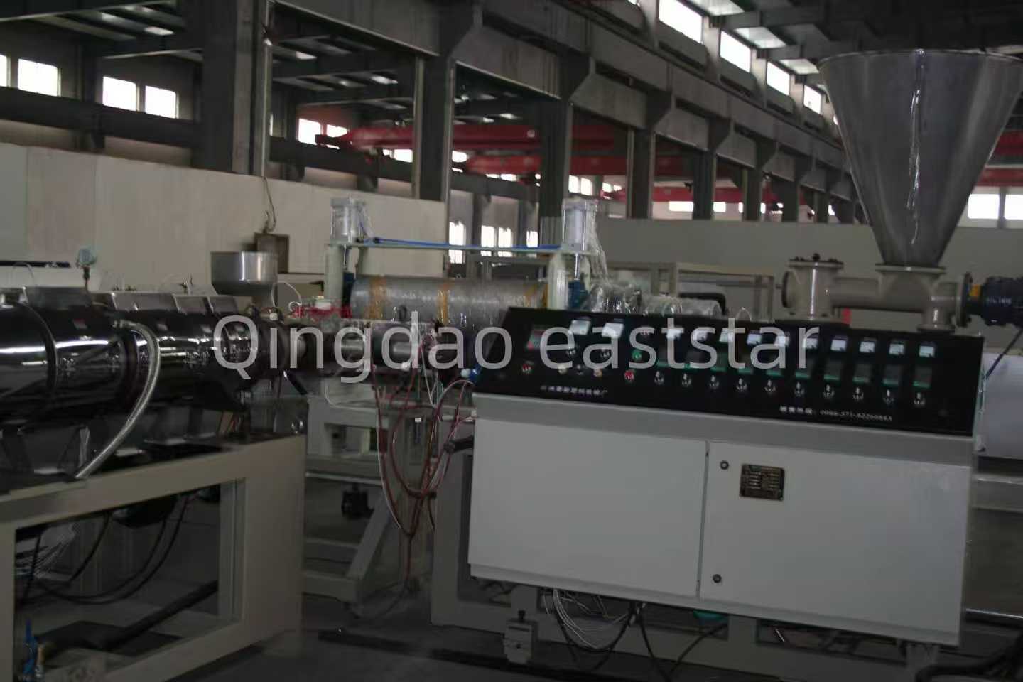 Pagrindinė įrangaPC + ASA koekstruzinio gofruoto lakšto gamybos linijayra du vieno sraigtiniai ekstruderiai SJ-120 ir SJ-40, naudojami atitinkamai PC sluoksniui ir ASA sluoksniui išspausti.