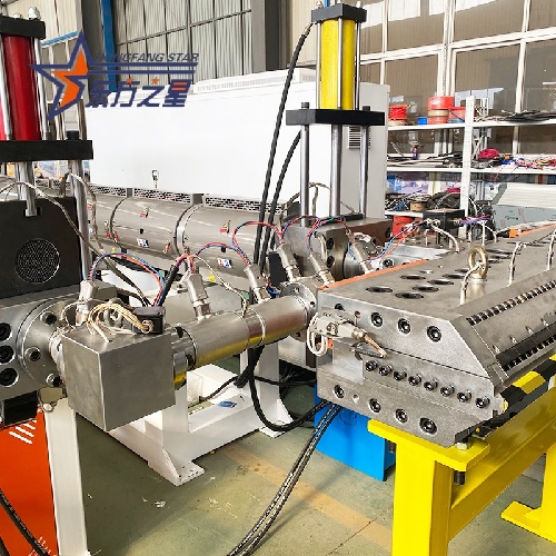 ABS koekstruzijos linijasukurta remiantis patikima dvigubo ekstruzijos sąranka (vadiname tai 120+60 modeliu). Pagrindinis ekstruderis yra galingas SJ-120/35 su 132KW varikliu, suporuotas su SJ-60/35 ekstruderiu. Šis derinys sklandžiai ir stabiliai valdo A/B/A arba A/B sluoksnių struktūras.
