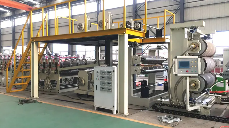 PE aliuminio-plastiko kompozicinių plokščių gamybos linija, dar žinoma kaip aliuminio-plastiko plokštė), kaip nauja statybinė medžiaga, kurią žmonės greitai pamėgo dėl ekonomiškumo, pasirenkamų spalvų įvairovės, patogių konstrukcijos metodų, puikių apdirbimo savybių, puikaus atsparumo ugniai ir kilnios kokybės. Unikalios aliuminio-plastiko kompozito plokštės savybės lemia platų jos panaudojimo spektrą: ji gali būti naudojama išorinių sienų statybai, sienų užuolaidų plokštėms, senų pastatų atnaujinimui, vidaus sienų ir lubų apdailai, reklaminiams iškaboms, stendams, valymo ir dulkių prevencijos projektams. Tai priklauso naujo tipo statybinėms medžiagoms. Įrangos gaminami gaminiai daugiausia tinka vidinės ir išorinės sienų PE kompozitinėms plokštėms, gaminio storis yra nuo 1-6 mm, plotis 1200-1500 mm, du modeliai, aliuminio folijos storis yra nuo 0,03 iki 0,5 mm, galima pasirinkti polimerinės plėvelės ar klijų sujungimo procesą. Įranga turi vieno liejimo, stabilaus ekstruzijos, tvirto junginio, gero plokštumo ir pan. privalumus.