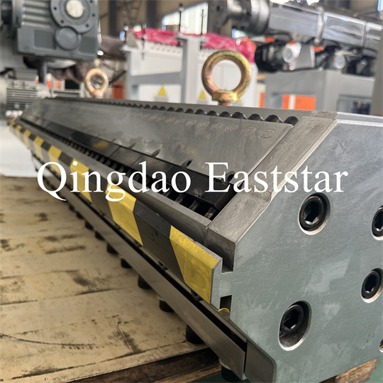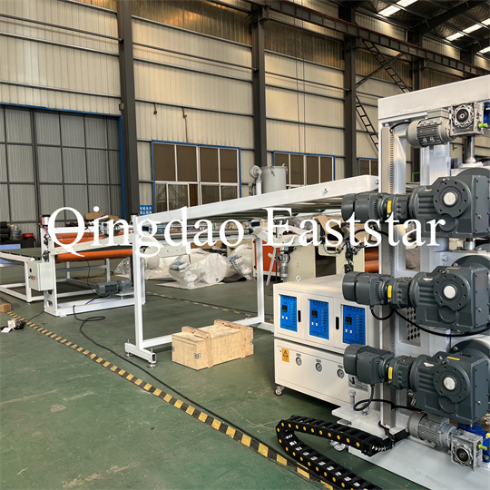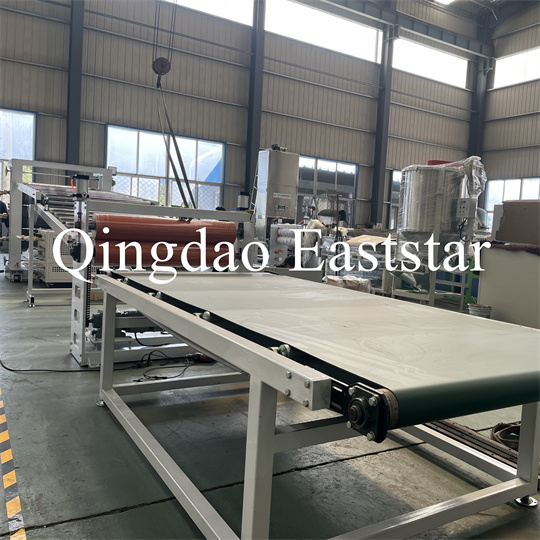 kronšteinas, guminio ritinėlio traukimo mašina, kirpimo mašina ir konvejerio juostos įtaisas. PVC neslystantis plokščių ekstruderis Įranga, gaminio plotis