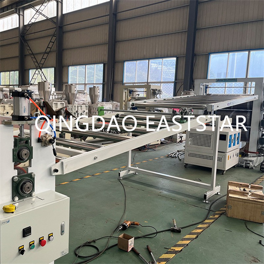 PVC apšvietimo skydo ekstruderio įranga PVC apšvietimo plokščių ekstruderio įranga: Įrangą daugiausia sudaro dviejų sraigtų ekstruderis, plokštelinė forma, trijų ritinėlių kalendorius, aušinimo laikiklis, guminio ritinėlio traukos mašina, pjovimo mašina ir transportavimo įtaisas.