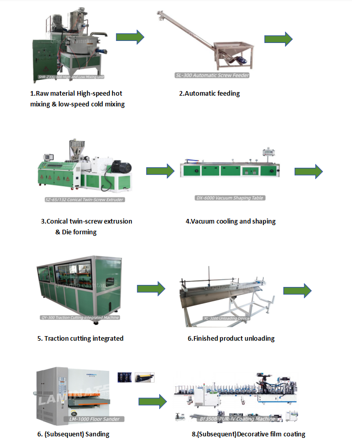 Vieno langelio sprendimas:Mes teikiame ne tik pagrindinę ekstruzijos liniją, bet ir didelio efektyvumo aukšto ir žemo maišymo įrenginius, tiksliuosius šlifuoklius ir aukštos konfigūracijos PUR dengimo mašinas, suteikdami klientams „vieno langelio“ raktų projektą nuo žaliavų iki gatavų grindų.
