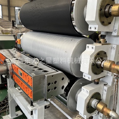 1150 mm paltų pakabos tipo gradiento srauto kanalo forma užtikrina tolygų lydalo pasiskirstymą per visą plotį. ∮400 mm didelio skersmens trijų ritinėlių kalendorius, tiksliai valdydamas temperatūrą ir slėgį veidrodiniais voleliais, gamina aukštos kokybės pagrindą su nedideliu storio nuokrypiu, nedideliu vidiniu įtempimu ir lygų paviršių – esminę prielaidą, norint vėliau įspausti aiškias ir patvarias „vėžlio kiauto“ tekstūras.