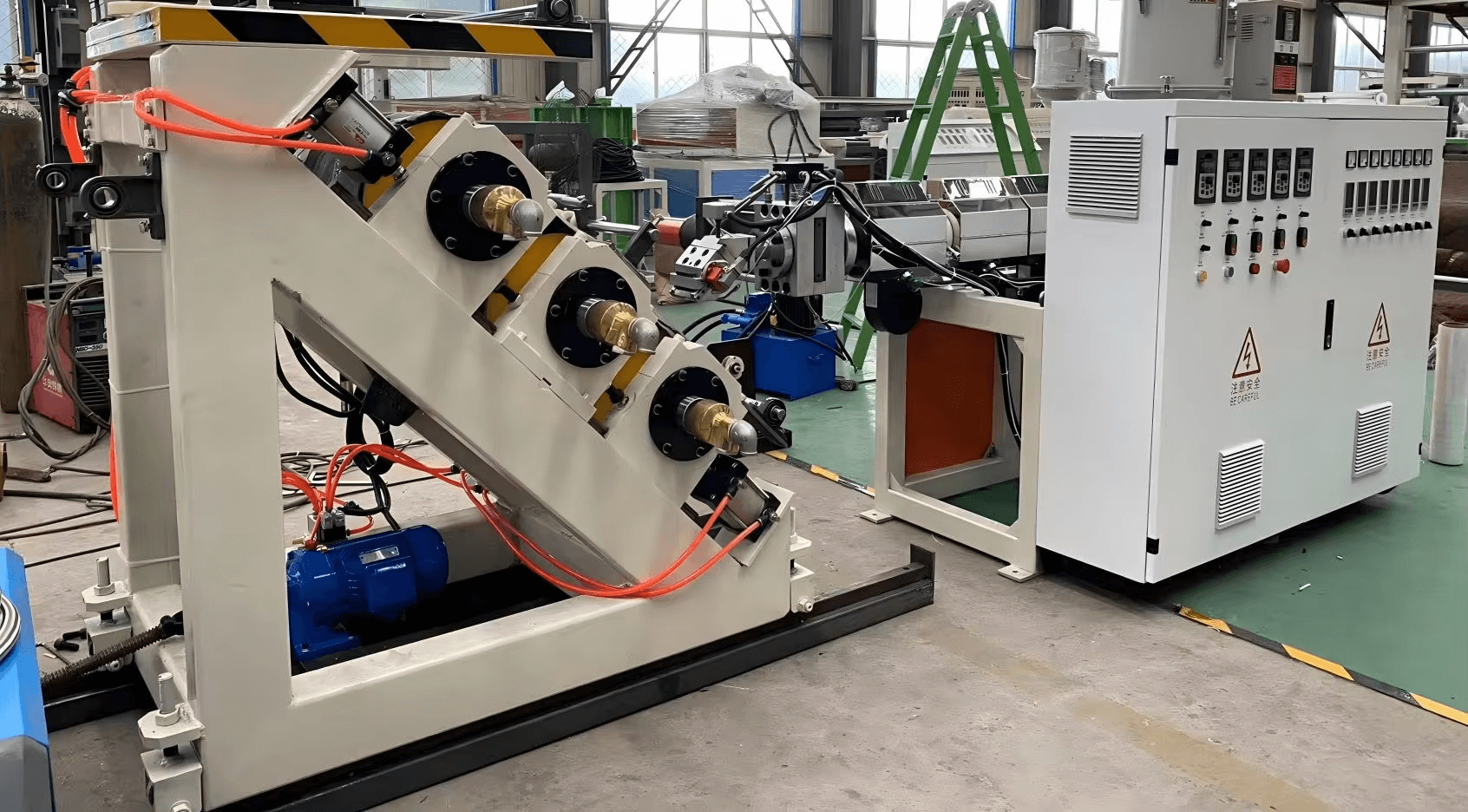 TPE vieno sraigto neaustinės kompozicinės koekstruzijos vandens stabdžių gamybos įranga naudoja didelio efektyvumo ekstruzijos technologiją, gamindama didelio stiprumo, atsparaus korozijai poliesterio (PET) hidroizoliacijas hidrauliniams, tuneliniams ir kitiems inžineriniams projektams. Įranga užtikrina tikslius matmenis ir puikų sandarinimo efektyvumą su automatiniu valdymu, palaikydama pritaikytą gamybą.