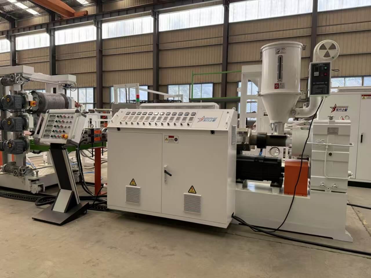 TPU/PE/PP/PS-300 plačialapio ekstruzijos linija tinka TPU/PE/PP/PS granulėms arba susmulkintiems mišiniams apdoroti.